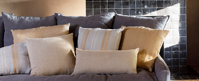 Los cojines Alphonse suman serenidad y textura natural a cualquier ambiente. Confeccionados en lino 100%, su paleta de tonos neutros y el acabado artesanal elevan sofá o dormitorio con un estilo atemporal. Elige tamaño y relleno para ajustarlos a tu espacio.